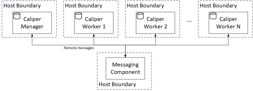 Unfortunately, this model is also constrained to a single host from the aspect of the Caliper processes. However, it is a useful model for taking your deployment to the next level once your benchmark artifacts are in place. Once you successfully integrated the messaging component, you are ready to move to the fully distributed Caliper setup.